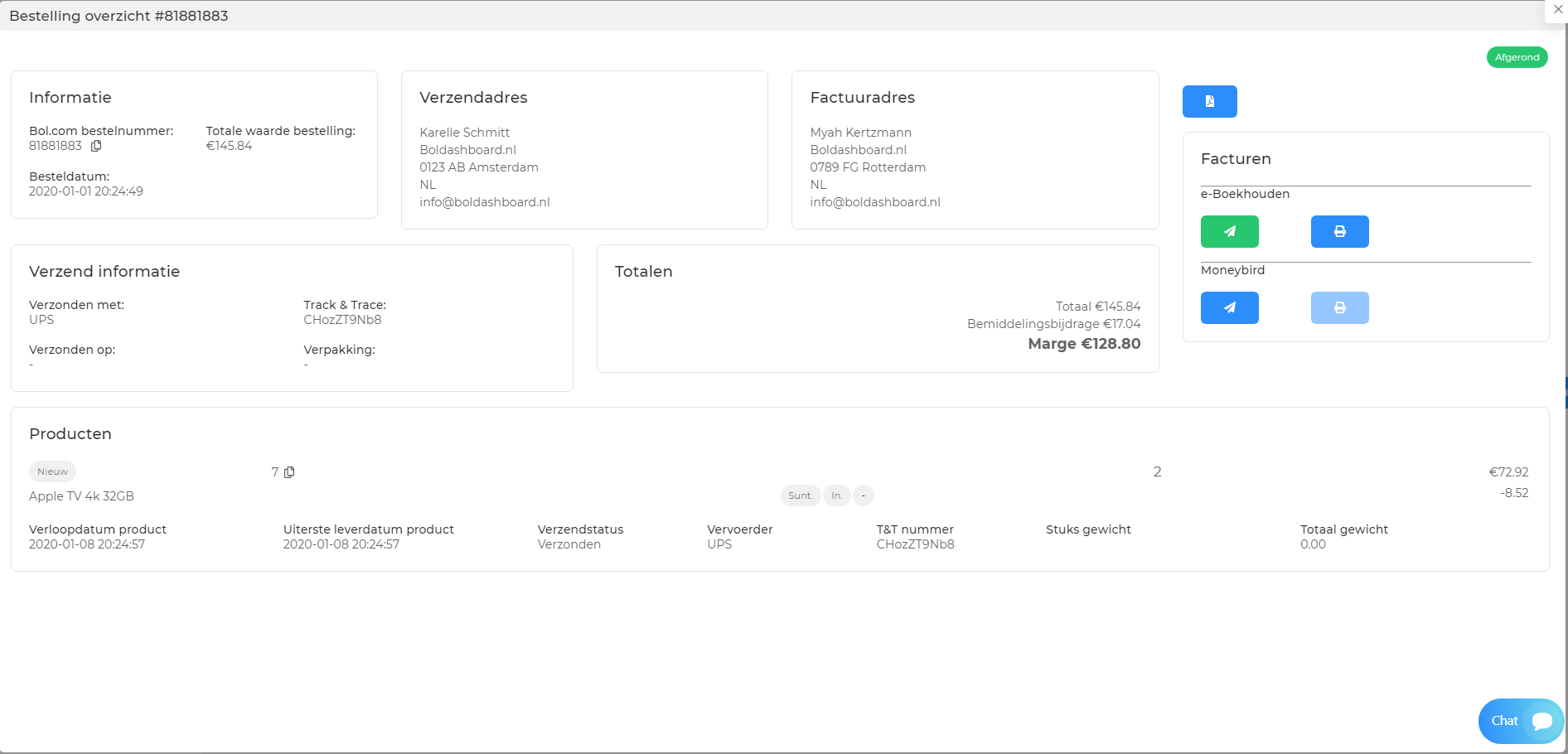 Om extra informatie van de bestelling te bekijken kun je rechts op het info icoontje klikken.