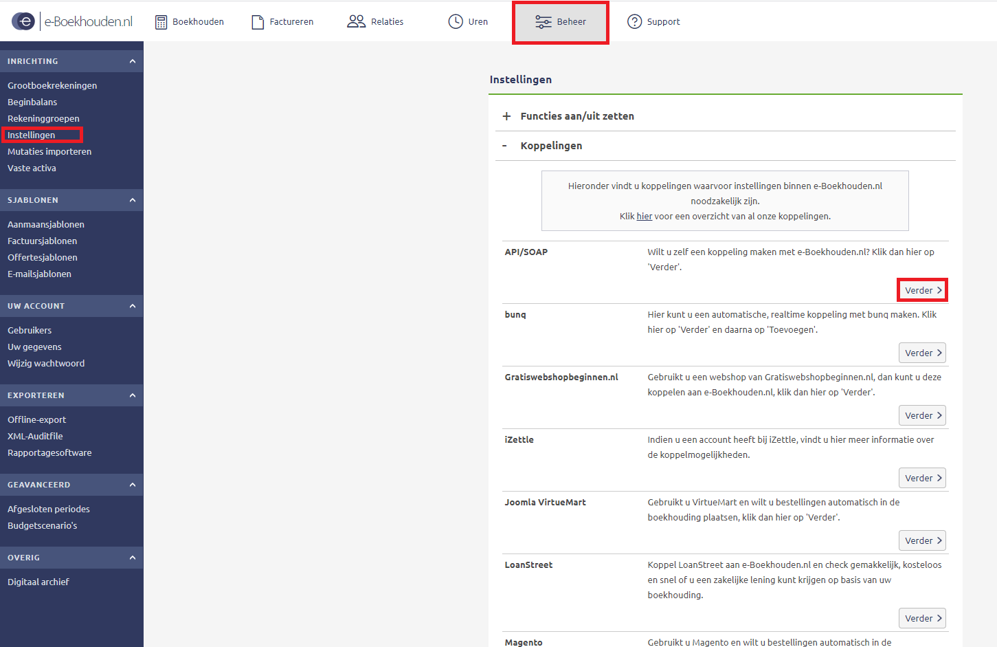 Stap 2.3: Klik op de website van e-Boekhouden op het kopje "Beheer" boven in de menu