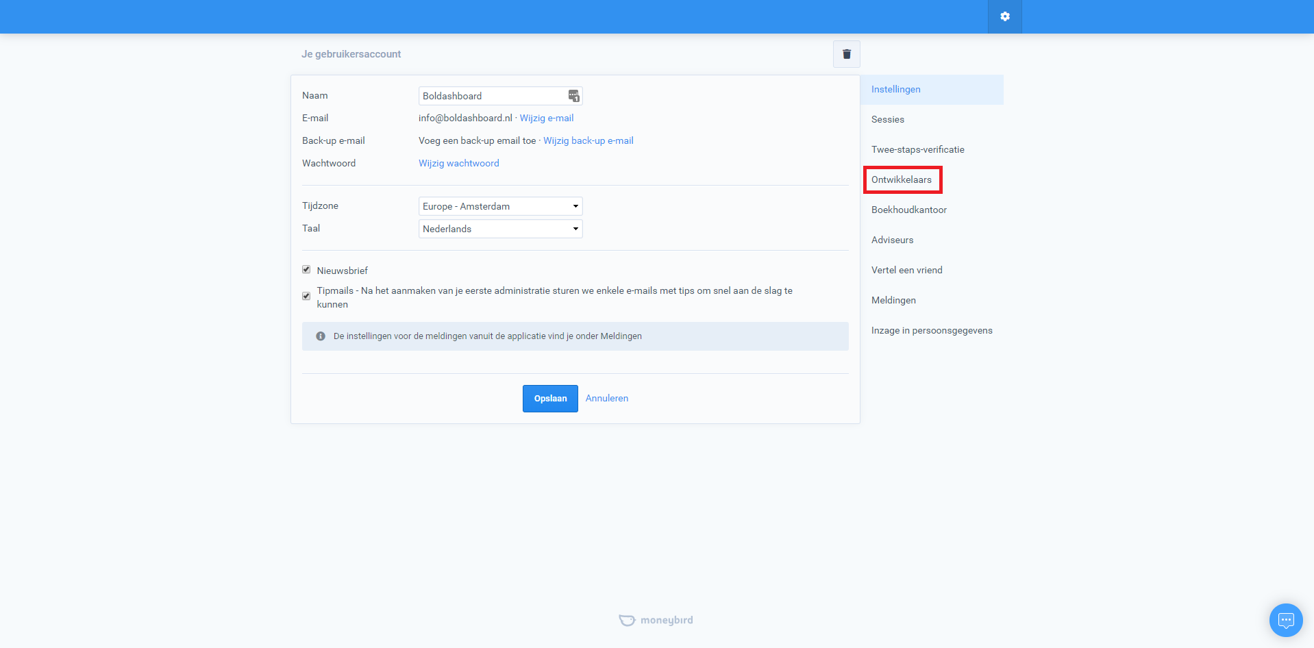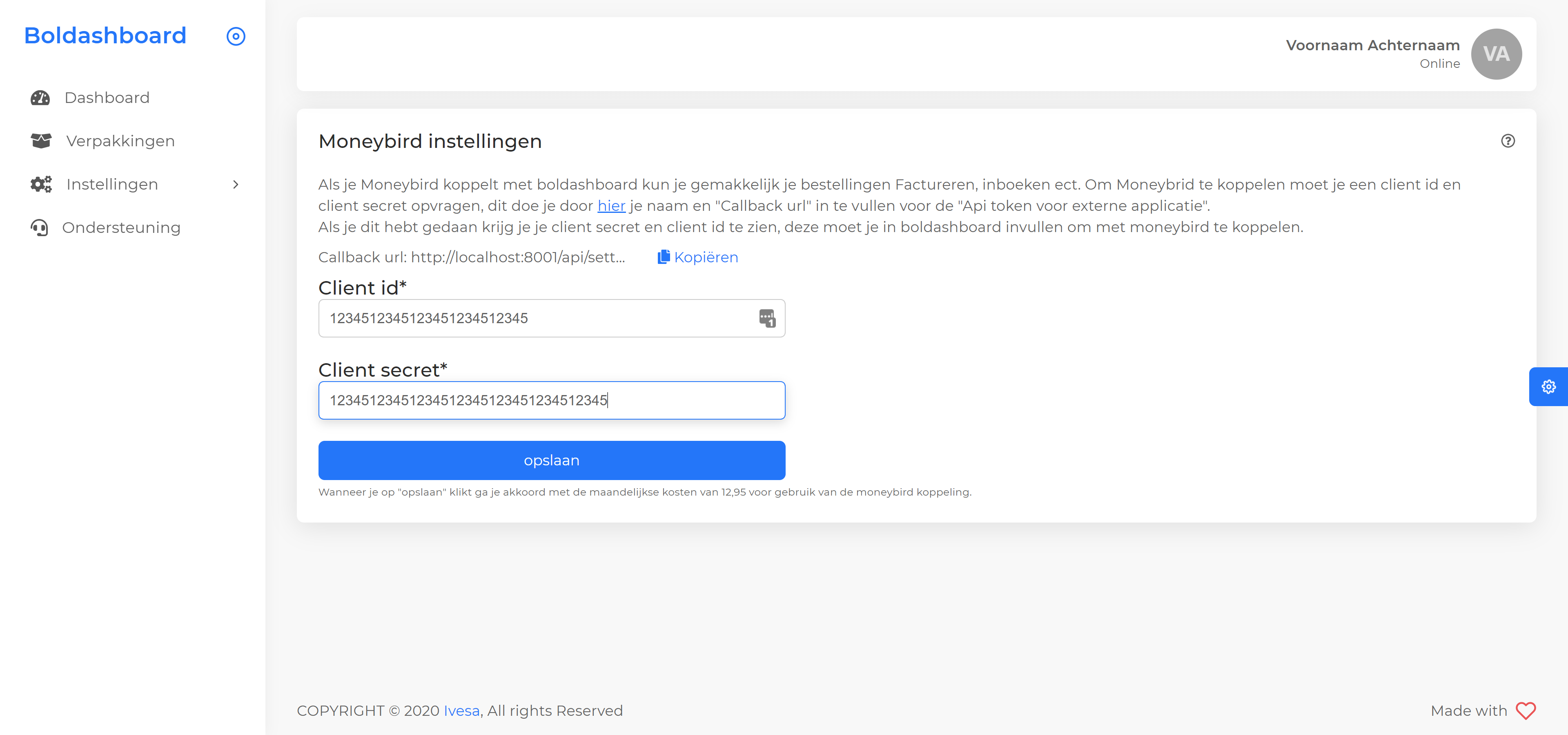 Bij de"Callback url" is het belangrijk dat je hier je "callback url" invult.