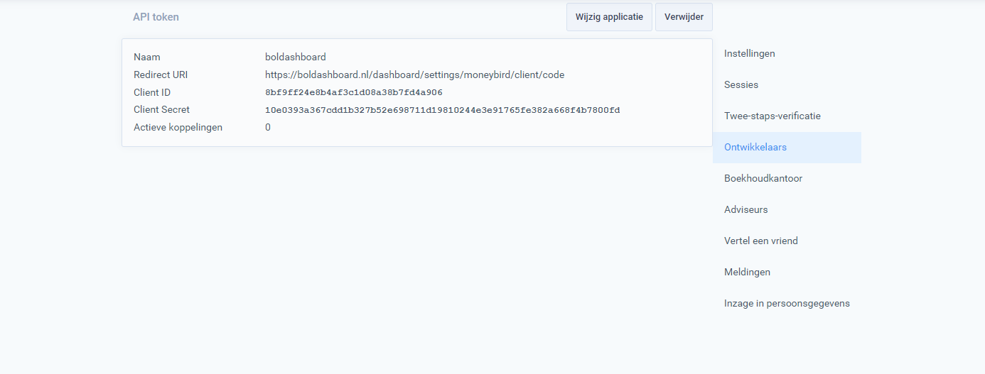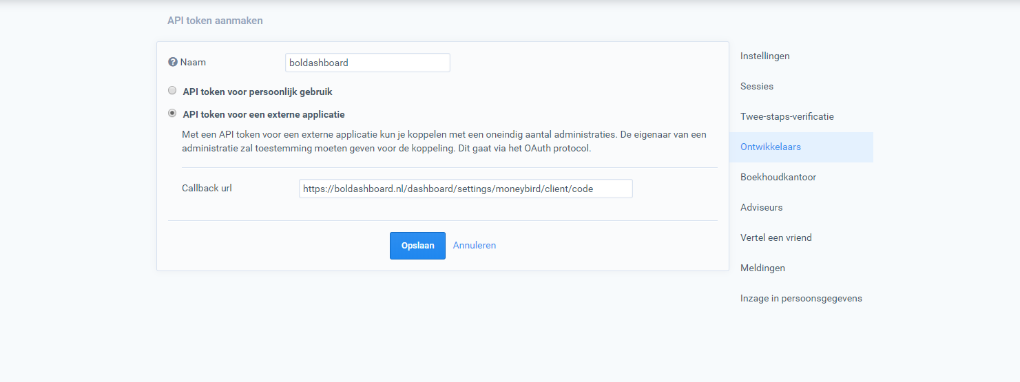 Vervolgens kies je voor de optie "API token voor een externe applicatie".