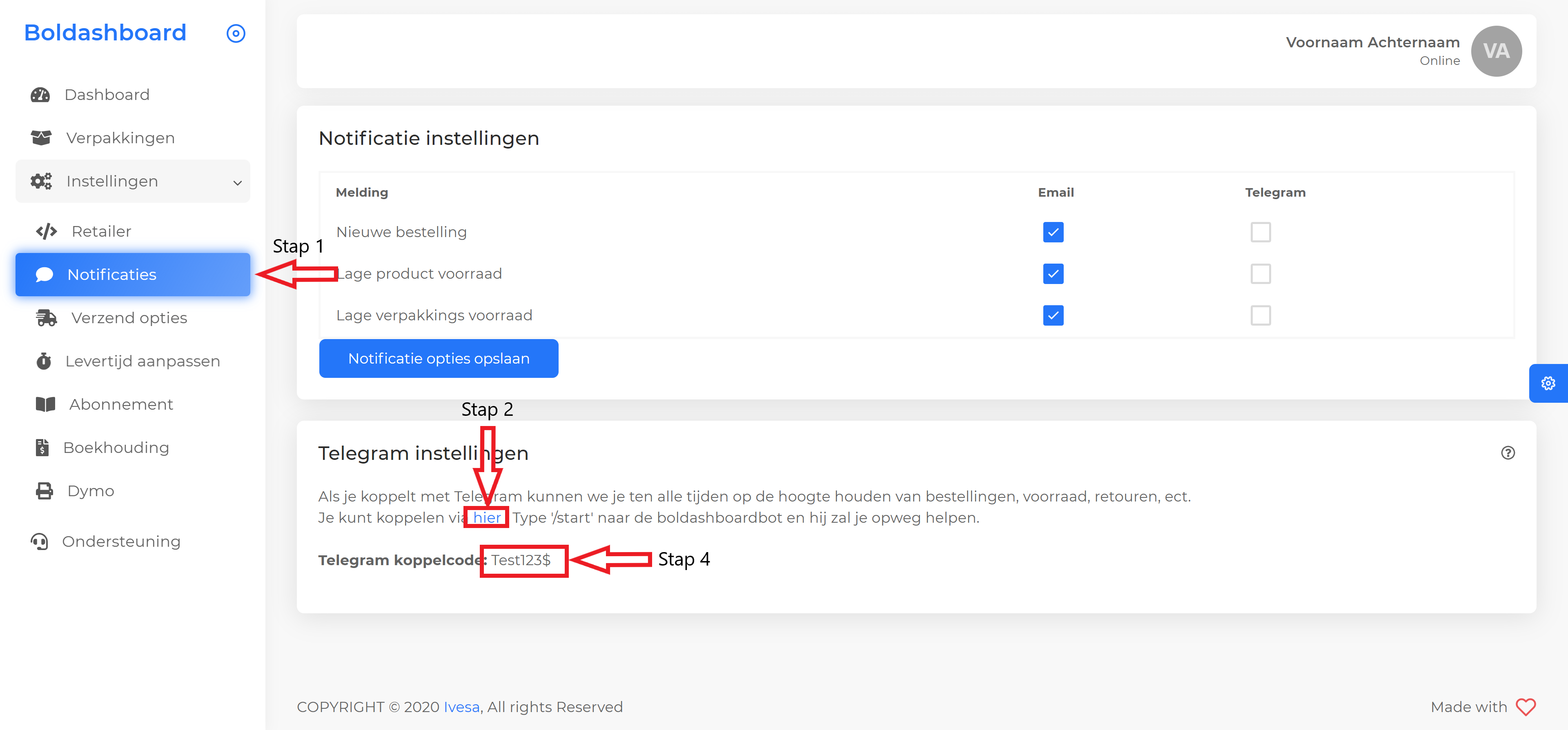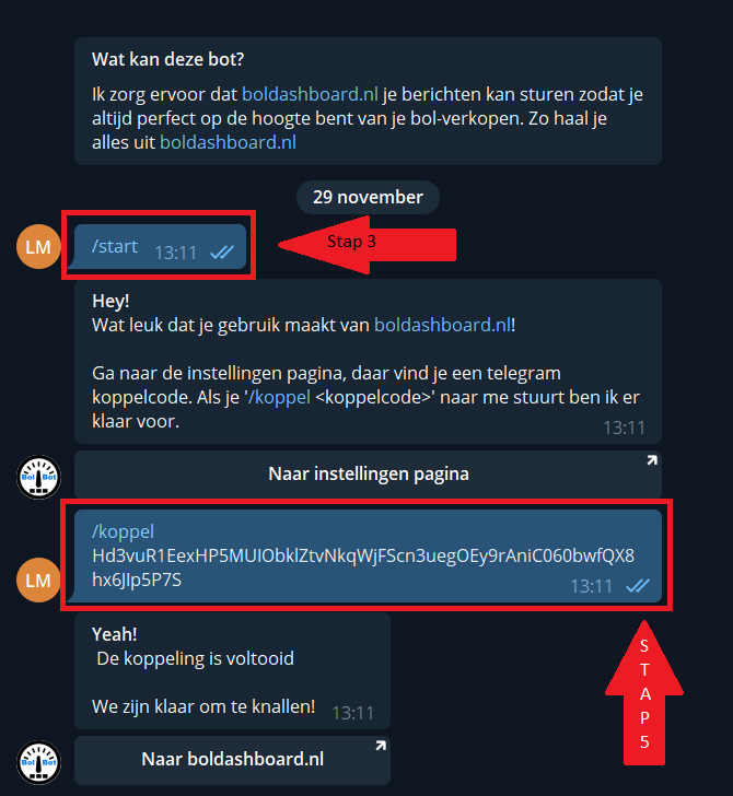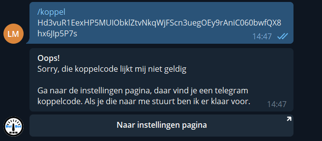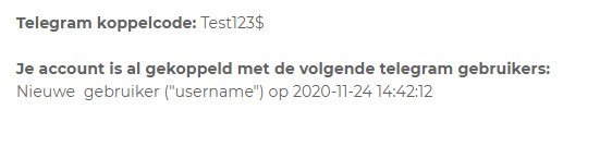 Stap 2 Om de koppeling met Telegram te starten kun je op het linkje "hier" klikken.